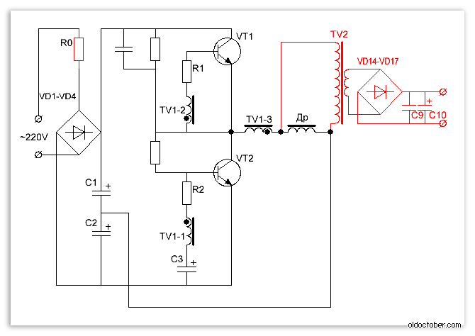 1. О способах получения необходимого тока в цепи первичной обмотке трансформатора обратной связи импульсного блока питания с автогенерацией. Схема с двумя ОС от NickF.